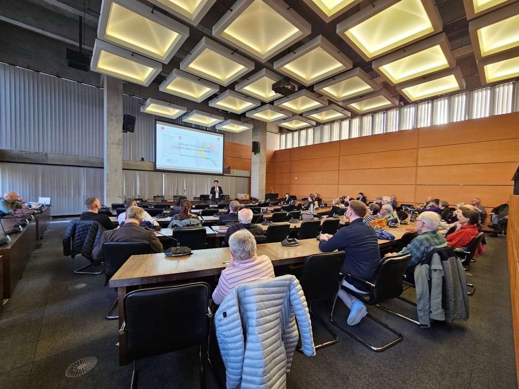 Knapp 50 Personen waren am Abend des 26. Februar in den Großen Ratssaal gekommen, um sich aus erster Hand über das neue Hochwasser- und Starkregenvorsorgekonzept (HWSRVK) der Stadt zu informieren. Gut drei Jahre lang haben Verwaltung, Bürgerinnen und Bürger sowie relevante Träger öffentlicher Belange an dem Konzept, gearbeitet, am 15. Dezember wurde der Maßnahmenplan 2026-2030 dann vom Stadtrat beschlossen.