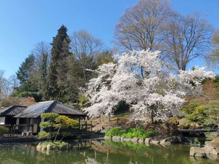 Passend dazu findet am 15.03.26 ab 11:00 Uhr der Kirschblüten-Lesespaziergang mit dem DUO WORTLAUT (Rainer Furch und Madeleine Giese) im Japanischen Garten statt. Dazu gibt es noch wenige Restkarten. Sie können sich per Mail an info@japanischergarten.de einen Platz für diesen kurzweiligen Spaziergang reservieren.