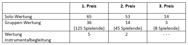 Die insgesamt 288 rheinland-pfälzischen Teilnehmerinnen und Teilnehmer wurden in 15 unterschiedlichen Wertungskategorien von mehr als 57 fachkundigen Jurorinnen und Juroren aus ganz Deutschland bewertet und konnten zahlreiche persönliche Erfolge erzielen. Der Wettbewerb ist der größte und erfolgreichste Musikwettbewerb seiner Art in Rheinland-Pfalz und in der Bundesrepublik Deutschland.