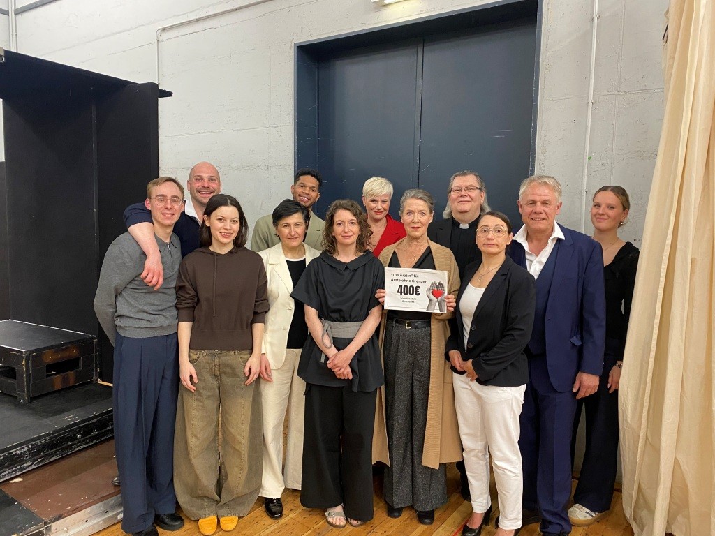 Mit dieser Geste möchte das Ensemble ein Zeichen der Solidarität setzen – passend zu einem Stück, das sich intensiv mit Fragen von Verantwortung, medizinischer Ethik und Menschlichkeit auseinandersetzt.