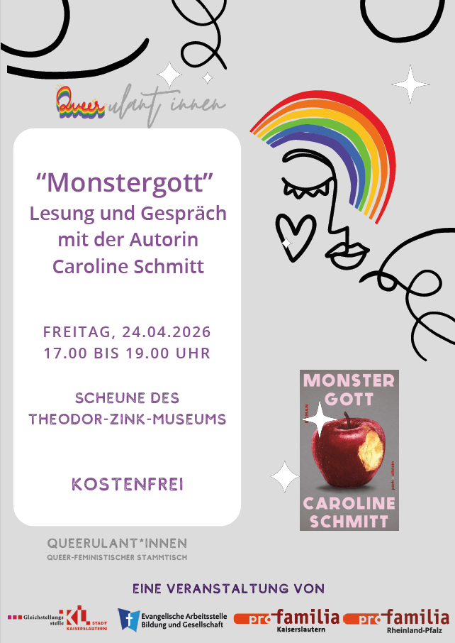 Die Gleichstellungsstelle der Stadt Kaiserslautern, die Evangelische Arbeitsstelle Bildung und Gesellschaft, profamilia Kaiserslautern und profamilia Rheinland-Pfalz laden am Freitag, 24. April 2026, von 17 bis 19 Uhr zu einer Lesung in die Scheune des Theodor-Zink-Museums ein. Der Eintritt ist kostenlos.