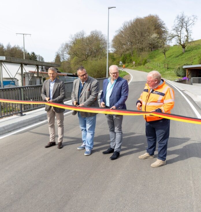 Mit einer kleinen Feierstunde wurde am Freitagvormittag, 17. April, die neue Brücke über den Frankelbach beim Grubenhof in Frankelbach offiziell eingeweiht und für den Verkehr freigegeben. Zu den Gästen zählten Landrat Ralf Leßmeister, Baudirektor Volker Priebe vom Landesbetrieb Mobilität (LBM), Staatssekretär Andy Becht sowie Gerd Schäfer vom Ministerium für Wirtschaft, Verkehr, Landwirtschaft und Weinbau Rheinland-Pfalz. Ebenfalls anwesend waren der Ortsbürgermeister von Frankelbach und Beigeordnete der Verbandsgemeinde Otterbach-Otterberg, Hans-Peter Spohn, der Ortsbürgermeister von Olsbrücken, Benjamin da Silva Moreira, der Kämmerer der Kreisverwaltung Kaiserslautern, Thomas Lauer, dessen Stellvertreter Andreas Weber sowie weitere Gäste.