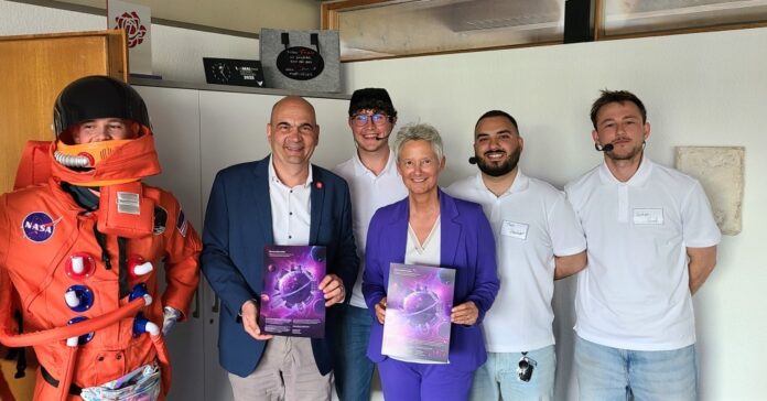 Passend zum Motto „UniverCity“ hatten die Mitglieder des Sommerball-Planungskomitees der Technischen Universität Kaiserslautern-Landau (RPTU) vergangene Woche im Rathaus der Stadt Kaiserslautern eine intergalaktische Mission durchzuführen: Bei dem kleinen Schauspiel traf ein Astronaut im All auf eine „unbekannte Spezies“ – Oberbürgermeisterin Beate Kimmel und Bürgermeister Manfred Schulz – und bot als Freundschaftsgeschenk eine besondere Einladung an.