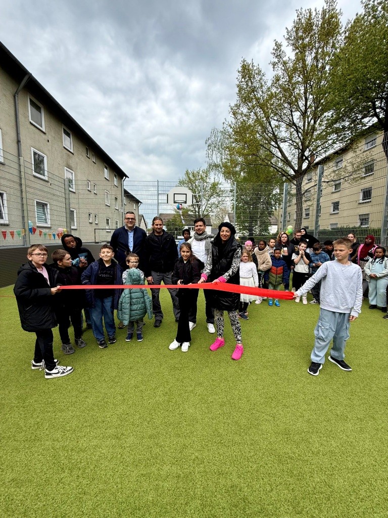 Im Laufe der Jahre wurde die Einrichtung kontinuierlich erweitert und konzeptionell weiterentwickelt. Ein besonderer Schwerpunkt liegt dabei auf einer qualitativ hochwertigen pädagogischen Arbeit sowie einer starken sozialraumorientierten Ausrichtung. Aktuell werden insgesamt 60 Kinder zwischen 6 und 14 Jahren betreut. Mit dem neuen Kleinspielfeld wurde nun ein weiterer Meilenstein erreicht. Das Spielfeld, das vollständig durch Sponsoren finanziert wurde, bietet Kindern und Jugendlichen im Wohngebiet deutlich verbesserte Möglichkeiten für Bewegung, Spiel und Begegnung. Es stellt eine wertvolle Ergänzung des bestehenden Angebots dar und trägt zur weiteren Aufwertung des sozialen Umfelds bei.