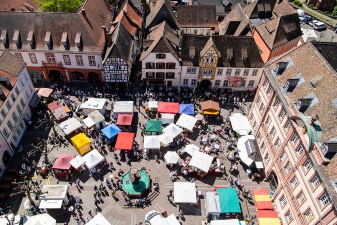 Am Sonntag, 3. Mai ist es wieder soweit: das Biosphärenreservat Pfälzerwald-Nordvogesen lädt zum deutsch-französischen Biosphären-Bauernmarkt auf dem Marktplatz und Juliusplatz nach Neustadt an der Weinstraße ein! Von 11 bis 18 Uhr bieten mehr als 40 Stände umweltschonend erzeugten Produkte aus dem Pfälzerwald, von der Weinstraße und aus den Nordvogesen. Ein wahres Füllhorn an Köstlichkeiten sorgt für das Gefühl von französischer Lebensart nach dem Motto „savoir vivre“: Unter anderem gibt es Obst und Gemüse, Wurst und Fleisch von Lamm, Wild und Schwein, Ziegenkäse, Baguette, Essige, Säfte, Biowein und -sekt, Marmeladen und Honig, Öl, Teigwaren und Kompott. Ein vielfältiges Getränkeangebot von Winzern und Bierbrauern gehört ebenso dazu.