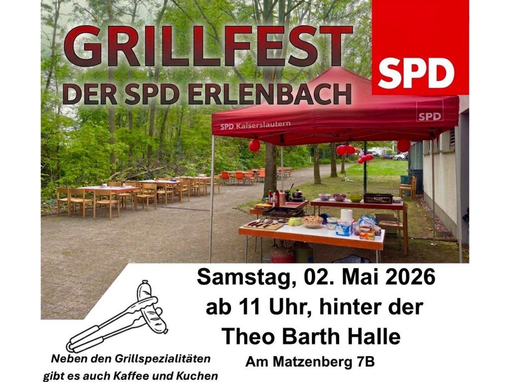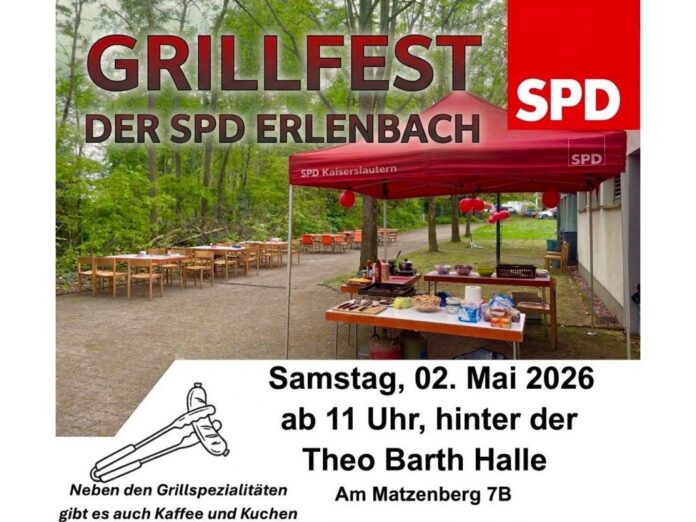 Die SPD Erlenbach lädt am Samstag, 02. Mai 2026, herzlich zu ihrem Grillfest ein. Beginn der Veranstaltung ist um 11 Uhr hinter der Theo-Barth-Halle (Am Matzenberg 7B).