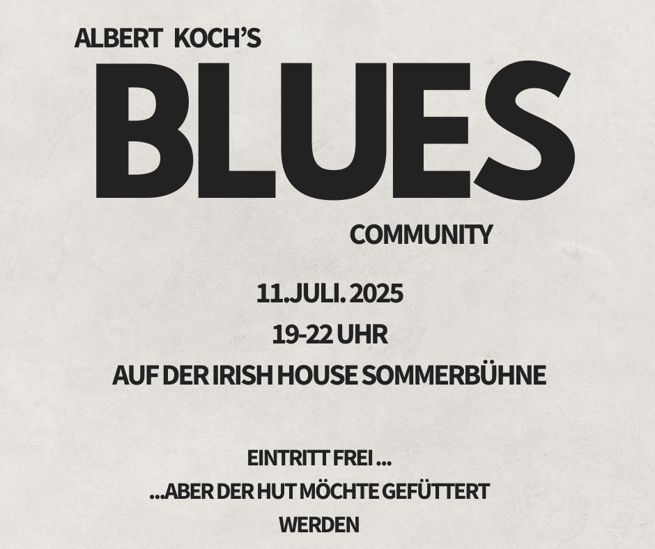 »I`m gonna get up in the morning, I believe I ‘ll dust my broom.« Die Albert Koch Blues Community lebt, fühlt und zelebriert den Blues in der reinsten Form. Genau so, wie er seit Jahrhunderten gespielt wird: Rau, pur und rein. Harp, Gitarre und Gesang, mehr braucht es nicht, um eine Bluesparty zu starten.