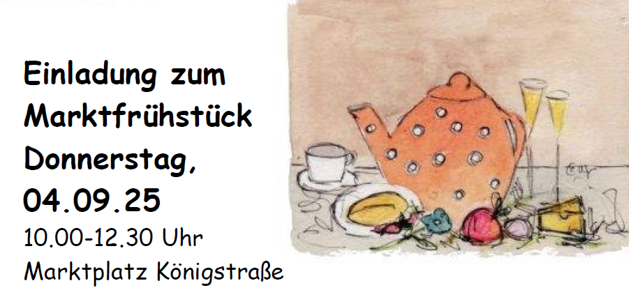 Das ASZ und die Bau AG laden am 4. September 2025 zu Sekt und Kaffee beim Marktfrühstück auf den schönen Donnerstagsmarkt an der Königstraße ein. An den Marktständen kann etwas Süßes oder Deftiges erworben werden. Zwischen 10 und 12.30 Uhr stellt das Wohn- und Pflegeheim Kessler Handorn seine neue Tagesstätte vor und Anuschka Molter vom Pflegestützpunkt Süd-Ost, sowie die Gemeindeschwester plus, Isolde Weisenstein […]